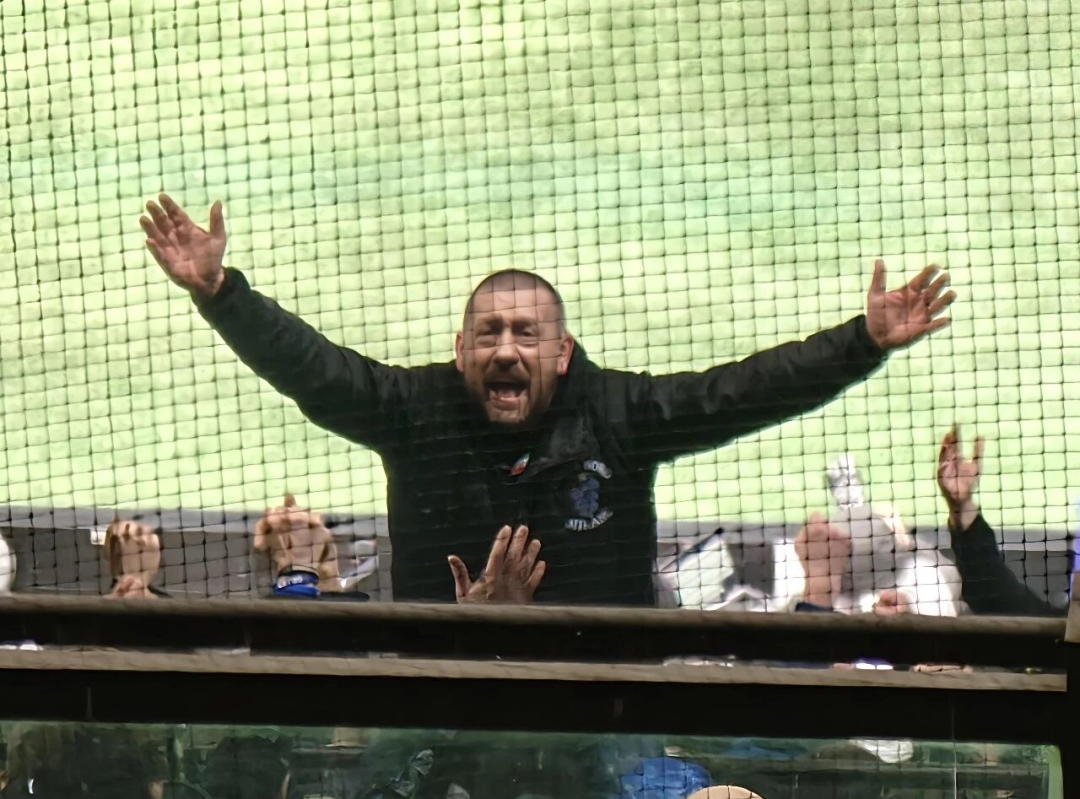 我错过了这个绝杀球,但并没有错过一个精彩的华章:与我一同下楼的四个国米球迷在疯狂庆祝,突然一个从后面扑向我,一边喊着“goal”,一边与我拥抱庆祝。其他几个国米球迷也涌上来。我们至少是从三四级台阶下跌落下来,好在楼梯下面的国米球迷接住了我们,没有人摔倒。更多的人因此搂抱在一起,其中一个球迷还用双手拍了拍我的脸。把我搂抱下台阶的哥们眼镜都差点掉了,而我的脚踝则有一点点轻微扭伤。