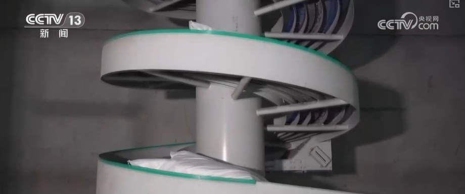 在这个生产线上,工人有了数字“工友”。面粉的分拣靠的自动码垛机,也就是一个超级机械手来完成。谁给它“喂料”?答案在这里,面粉坐着螺旋式输送机进入到分拣环节。