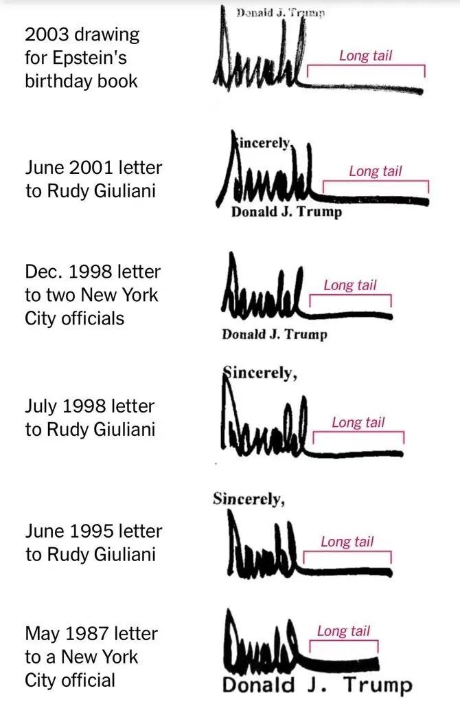 尽管一些人认为,确实有点不像,说不准正是伪造的;但更多人比对后认为,这就是特朗普的签名,如假包换。