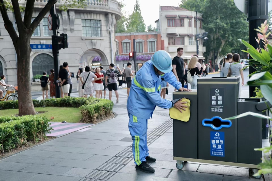 作为上海中心城区内规模最大、优秀历史建筑最多、历史风貌格局最完整的历史文化风貌区以及国家级旅游休闲街区之一,衡复风貌区每天都要迎来数万人次的游客,其中,仅人气最集中的武康路-安福路街区日均游客就在三五万人次左右,日峰值更是突破7万人次。居高不下的人气带来烟火气的同时,也带来了一个不容回避的问题——大量垃圾由此产生。据负责这一区域的上海徐汇环卫服务有限公司晶貌环卫分公司统计,仅游客每天在安福路上扔掉的咖啡杯就有一两千只,再加上饮料瓶、餐巾纸、剩余食物等各种垃圾,武康路-安福路街区游客日均产生的湿垃圾和干垃圾总量多达1.5吨左右。一边是人气,一边是市容,如何平衡好这对关系,让市民游客看到更好的环境?徐汇环卫用精细化作业来解题。