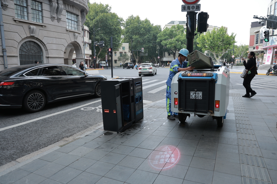 近期,在乌鲁木齐路五原路口、武康路兴国路口、安福路等人流量最集中的6个点位,晶貌环卫分公司还试点在废物箱上安装满溢传感器,每当桶内垃圾达到2/3容量时,传感器就会向这一区域“飞行保洁车”搭载的智能屏发送提醒,“飞行保洁员”可以在15分钟内赶到清理,较去年的20分钟又减少了5分钟,有效避免市民游客因废物箱装满了而不得不将垃圾扔在箱外的尴尬。此外,环卫公司还为班组长配备了高清工作记录仪,实时记录作业轨迹和现场情况,遇到突发问题可即时回传;所有作业车辆都安装了作业行为监测系统和主动安全视频系统,后台可实时查看车辆行驶情况,方便调派人力及时处理大客流带来的突发状况。