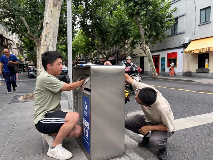 应对衡复区域业态复杂、人流量的特点,特别是暑期客流骤增的情况,徐汇环卫公司创新手段,多管齐下,采取了许多有针对性的办法。例如,针对武康大楼每天潮汐式的人流状况,在上午9时至晚上9时之间,将可移动式废物箱投放在人流量最集中的“最佳拍照点”源点广场、武康大楼公寓入口以及武康路兴国路口三处,这样既可以满足游客投放需求,也可以减少对周边居民的影响。这些配备静音万向轮的可移动式废物箱还可以根据区域人流变化“动态走位”精准投放,让废物箱“跟着人流走”。记者看到,为了与衡复风貌区的环境匹配,这些废物箱不是常见的不锈钢本色或黑色,而是采用了与周围红砖洋房同色系的复古金属外观,降低了存在感,放在道路上并不扎眼,比较和谐。