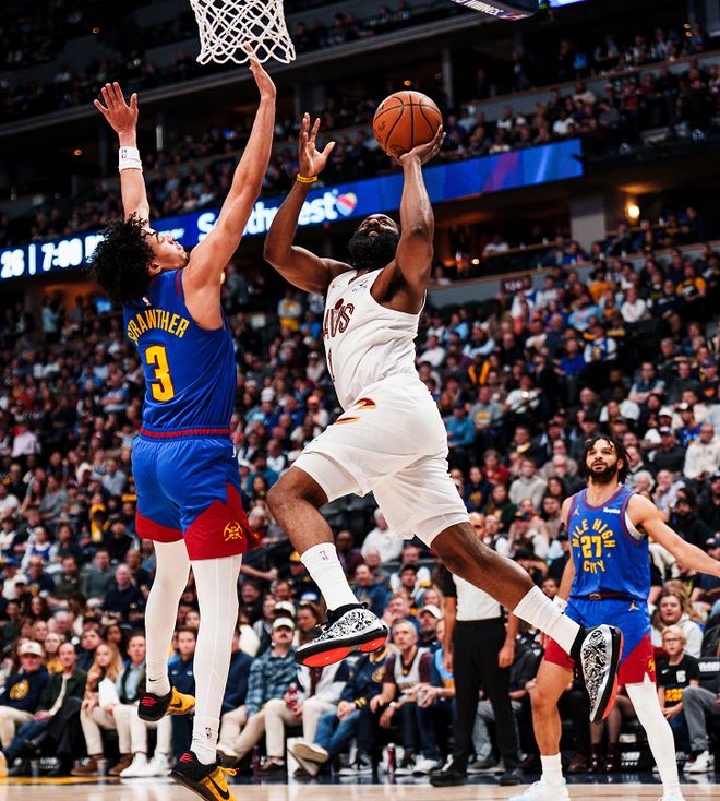 这一个比赛日,掘金坐镇主场鲍尔体育馆,迎来了一场硬仗,对阵克利夫兰骑士,本场比赛处于适应期的哈登低开高走,末节又一次拯救了球队,再加上米切尔的稳定发挥,骑士也119-117双杀掘金。