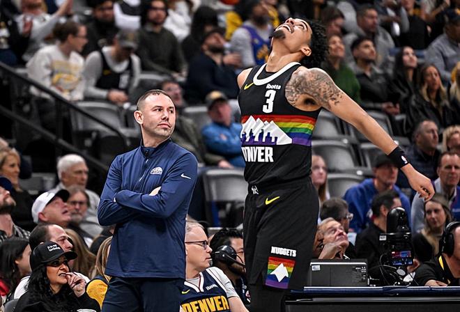 本场比赛中,掘金虽然输掉了比赛,但是球队的先发侧翼新星朱利安-斯特劳瑟(Julian Strawther)的表现其实还是相当不错的。斯特劳瑟全场出场25分钟,投篮11中6,三分线外10中6,得到了18分1篮板2助攻1抢断的数据,还有1次失误和1次犯规,正负值也是达到了全队最高全场次高的+6。斯特劳瑟在进攻端其实并没有得到太多的表现机会,但是他还是展现出了自己超强的投射能力并且得到了不少分数,起到了很好的效果。只是掘金对于斯特劳瑟的支持度非常有限,不愿意给他提供更多的出场时间和更多的出手机会,他也没有办法在这种情况下起到更大的作用了。实际情况是,斯特劳瑟在场上的效果相当不错,其他球员在进攻端的稳定性也并不如他,但是他还是没有办法得到更多的信任,到了第四节不仅出场时间不多而且还得不到出手机会。
