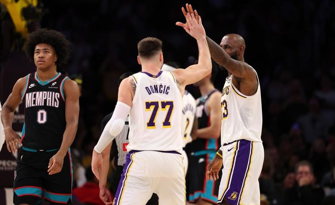 在末节决战中,老詹得到11分3篮板3助攻,东契奇则是入账10分3篮板2助攻,灰熊如何遮拦得住?这两位历史级别的playmaker型球员,单独拿出一位来,就够中游球队的防守喝一壶,两人双剑合璧,那防守难度更是呈指数级上升。之前球队状态不佳时,詹姆斯和东契奇的关系也深陷舆论漩涡,上场比赛,场边摄像机拍到老詹大笑并亲昵搂着卢卡脑袋的镜头,也是让这样的谣言不攻自破。对于湖人来说,能同时拥有卢卡和老詹是幸运,又何必自寻烦恼呢?