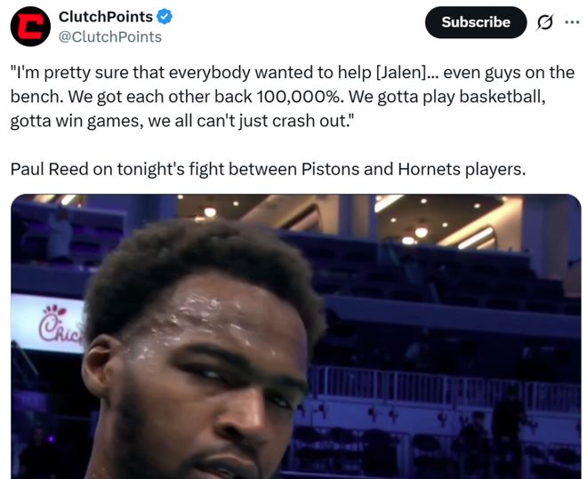 活塞里德则坦言:“我确信每个人都想上去帮忙,甚至包括板凳席上的队友,我们100000%支持彼此。”