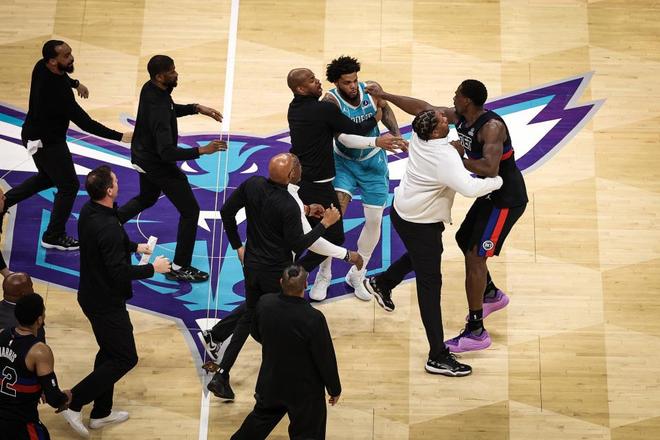 前一场击败老鹰,队史首次拿下9连胜的黄蜂队迎来与东部第一活塞队的较量,结果两队不仅在场上打得难分难解,还爆发大规模冲突,一口气4人被驱逐出场。