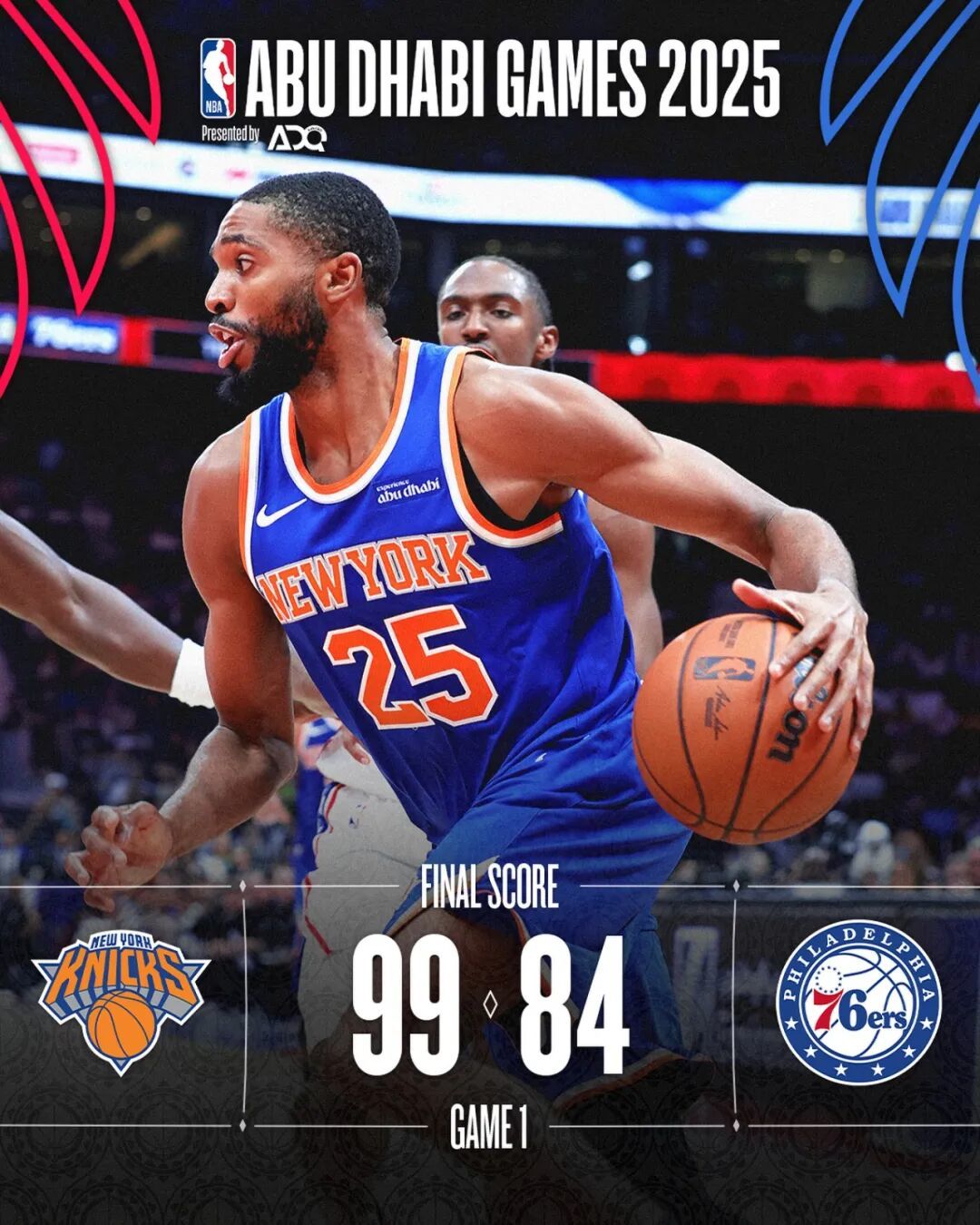 在阿联酋阿布扎比,76人和尼克斯打响了季前赛揭幕战。