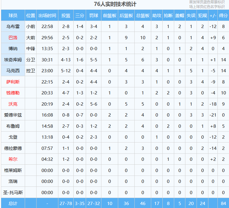 反观76人,泡椒和大帝还在养伤未被激活,只让马克西和乌布雷两位左右护法带着博纳、埃奇库姆、巴洛迎战。