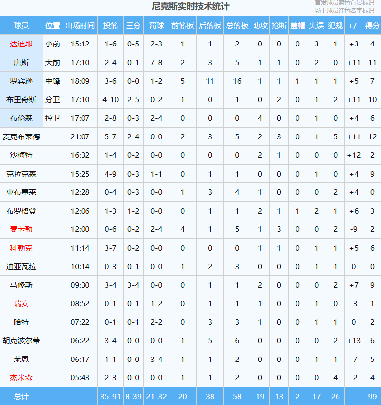 末节76人手感回暖顺势追分,但尼克斯没有给太多机会,稳住优势以99-84轻取76人。