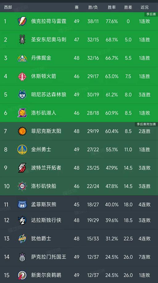西部最新积分榜