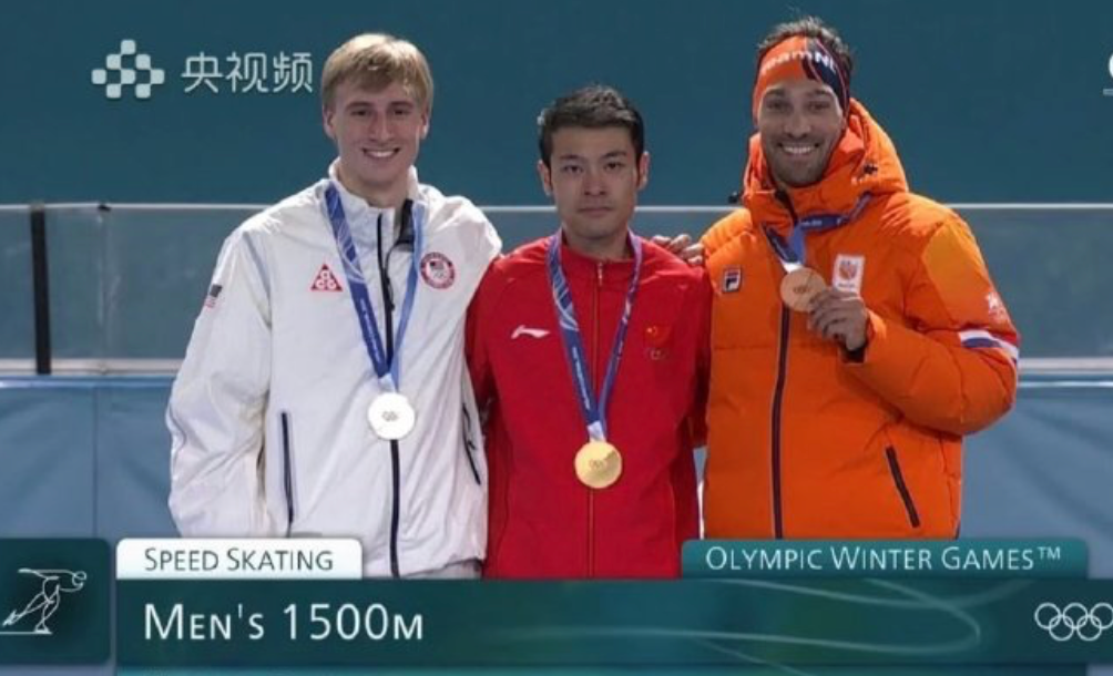 这是中国在速滑男子1500米比赛中赢得的首枚冬奥金牌,同时也是中国代表团在本届冬奥会获得的第三金。