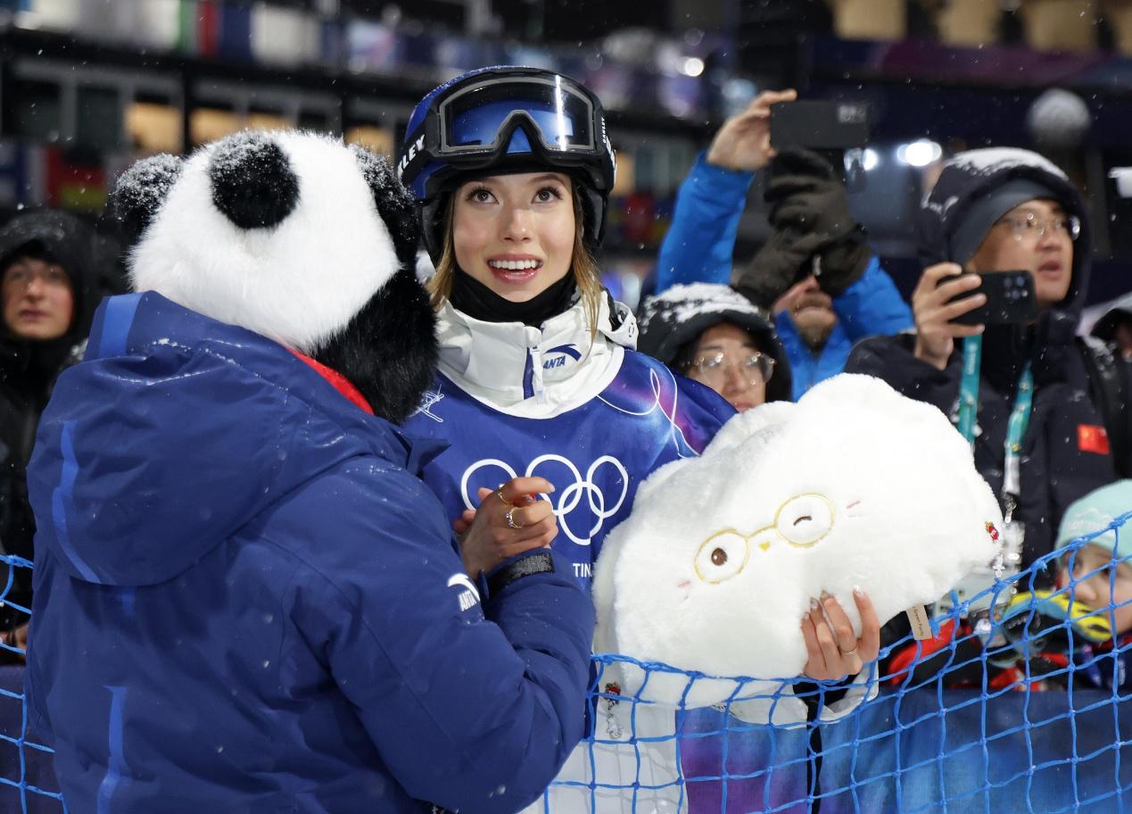 面对资格赛头名加拿大选手梅甘·奥尔德姆、以东道主身份出战的新科世锦赛冠军弗洛拉·塔巴内利等一众高手,四年间未曾参与任何国际雪联大跳台正式比赛的谷爱凌,显得格外轻松和专注。