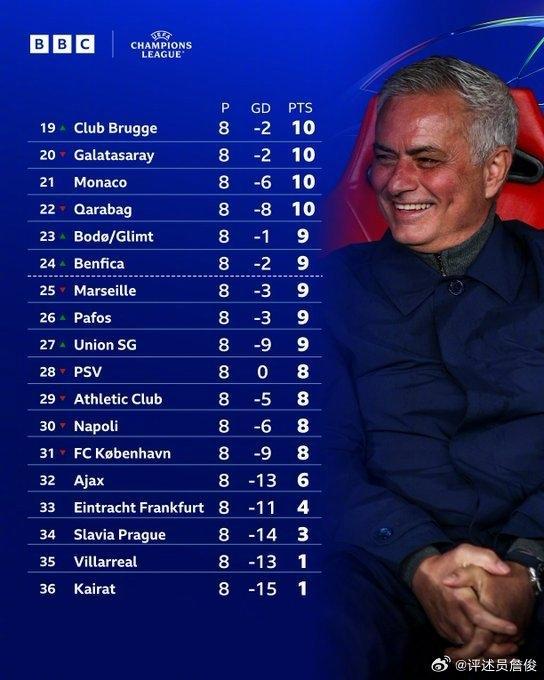 詹俊:“欧冠奇妙夜!穆里尼奥带领本菲卡靠补时来自门将特鲁宾的最后一击挤进16强附加赛,而将最后9人应战的皇马推落前9名(要踢16强附加赛)。