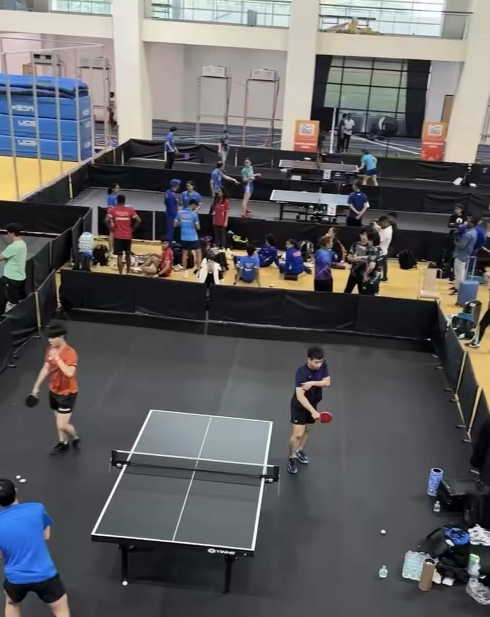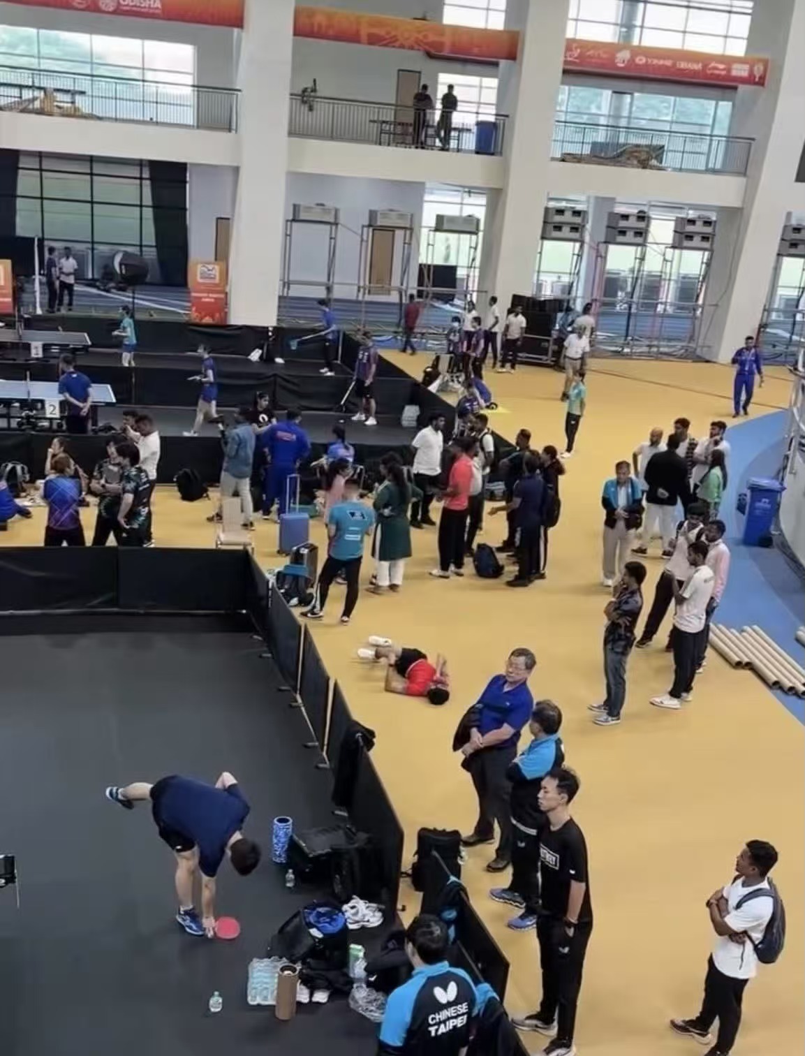 而本次亚锦赛团体赛,对国乒球员而言最大的挑战并不是赛场之上,而是赛场内外的环境,从目前公开的消息来看,在10月9日也就是开赛前两天的时候,赛场地胶还没有铺设完毕,现场的乒乓球场地是由室内的田径场改造的,从公开赛的现场画面来看,有部分球队已经进行了适应场地训练,现场显得很混乱。