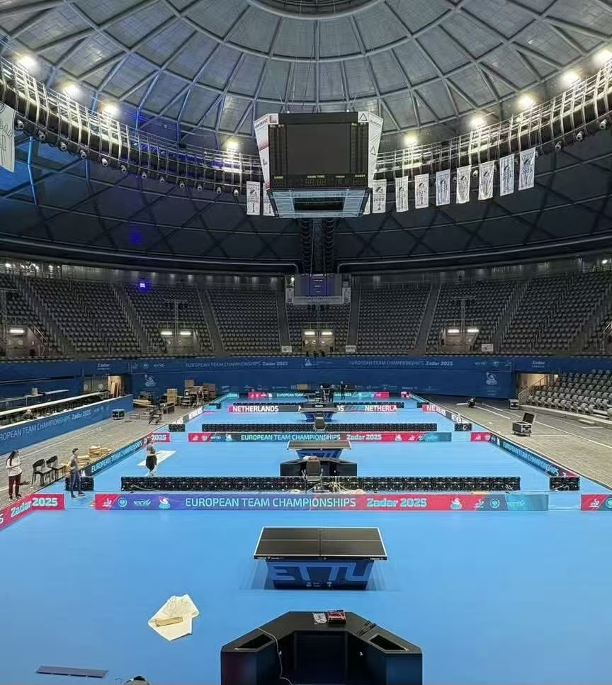 要知道同一时间乒乓球欧锦赛也在进行,而欧锦赛的比赛场地显得干净整洁,已经完全具备正式比赛的要求,真的是没有对比就没有伤害......