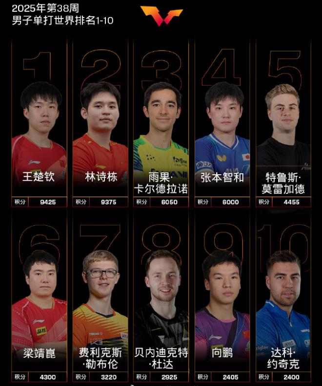 王楚钦凭借冠军的1000积分,重返世界第一,而且是时隔7个月重返世界第一,领先优势仅50分,非常微弱的领先,下一站是北京大满贯,对王楚钦来说压力也不是很大。