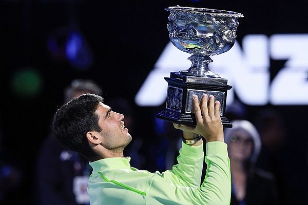 在昨日落幕的2026年澳网男单决赛中,排名世界第一的阿尔卡拉斯以2比6、6比2、6比3、7比5逆转传奇巨星德约科维奇,首次捧起澳网奖杯。他在第七次夺得大满贯男单冠军的同时,以22岁272天的年龄成为男子网坛史上最年轻的全满贯得主。