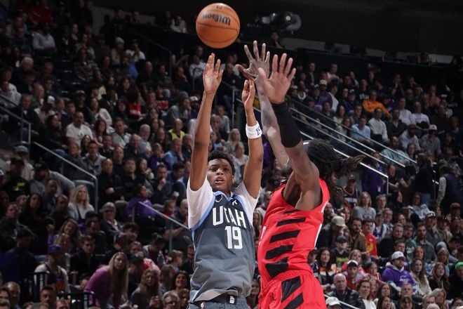 本场比赛中,爵士虽然输掉了比赛,但是球队的先发锋线新秀艾斯-贝利(Ace Bailey)也算是展现出了一定的特点。贝利全场出场34分42秒,投篮15中7,三分线外5中1,得到了15分8篮板3助攻的数据,其中还包括了3个前场篮板,还有4次失误和2次犯规,正负值为-19。贝利也算是能够在对手内线制造一定的威胁,而且他在前场篮板争抢方面的表现也是非常积极的,他还具备一定的传球能力和策应能力。不过贝利在中远距离投篮方面的稳定性还是无法令人感到满意的,他在失误控制方面也做得不太理想,而且他在防守端的贡献度也并不能完全达到预期。贝利的表现不是没有亮点,但是整体表现也并不能算是令人非常满意的,他在其他方面方面也是应该要做得更好的。