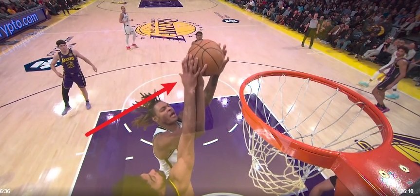 文森特打到了持球人的手掌背部,没有打到球,这也是一个好防!