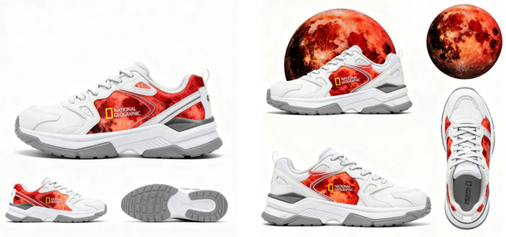我们先拿这两天刷屏的红月亮,融合到球鞋设计中。