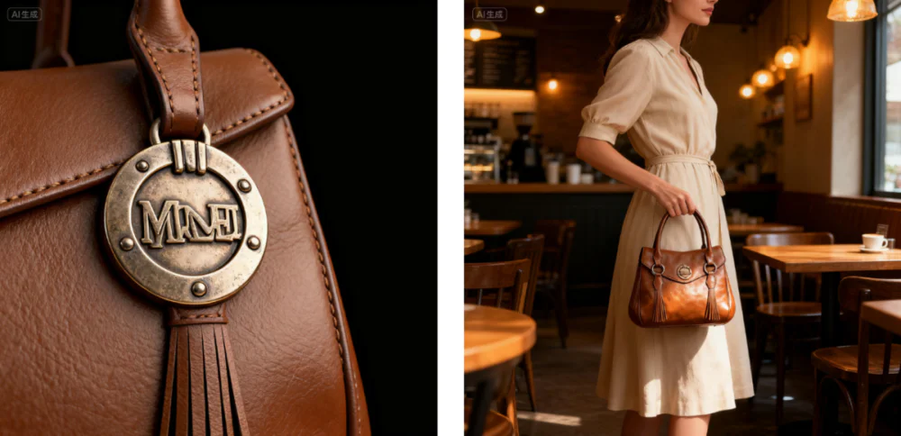 像皮具、金属的纹理表现已经很稳了,但当我看到它生成人的皮肤纹路时,还是被秀到了。