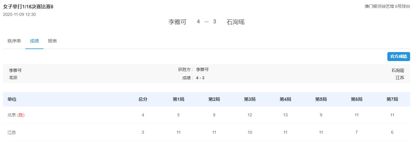 而在女单1/16决赛,爆出的最大冷门,莫过于赛会女单9号种子石洵瑶,3-4输给了李雅可,此役石洵瑶是在大比分2-0,第三局小分6-0领先、第四局小分10-8领先,被李雅可实现逆转的,石洵瑶这样的输球确实令人意外。