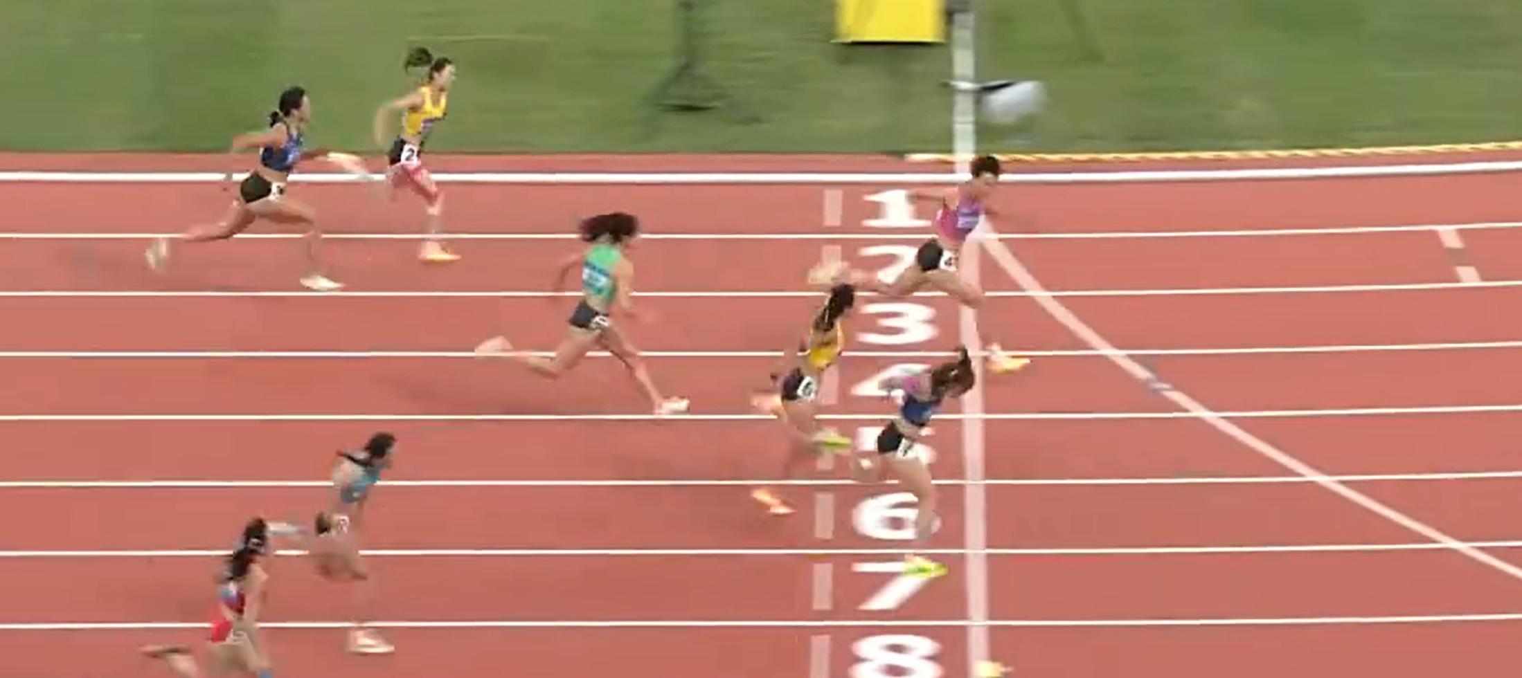 比赛开始,林雨薇启动处在第一,吴艳妮凭借后程加速完成超越,同时刘景扬也在不断加速超越,在最后时刻反超吴艳妮,最后撞线成绩12秒81获得冠军,这一成绩刷新了她的个人最佳。吴艳妮12秒85获得亚军,林雨薇12秒94获得季军。湖南队的夏思凝以13秒12获得第四名,她和吴艳妮、林雨薇均创造本赛季个人最好成绩。
