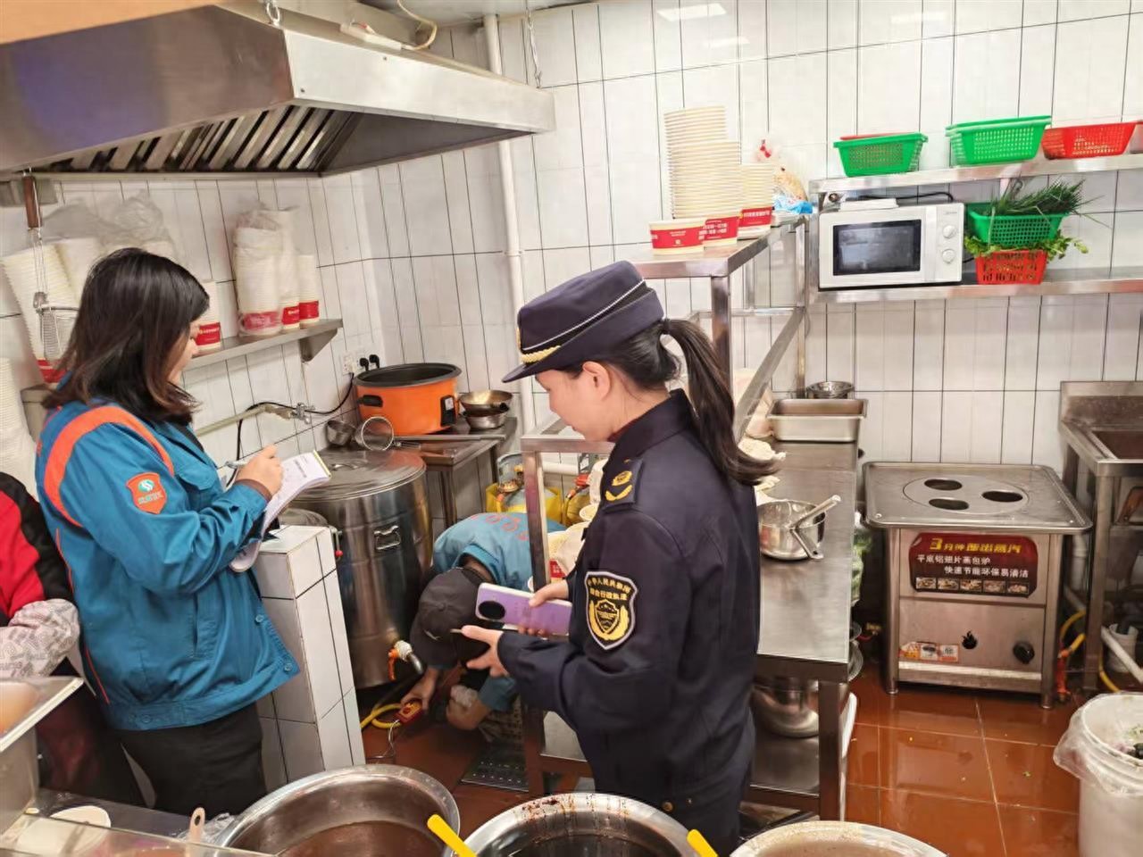 燃气是厨房烟火气的“底气”,但用不好也可能变成“隐患气”,在检查现场,燃气企业技术人员与执法队员组成联合检查组深入餐饮后厨,对燃气设备、管道连接、燃气报警器、液化气瓶、阀门等逐一排查。检查中,执法队员仔细查看燃气器具是否合规、管道是否存在老化破损,燃气企业技术人员则对燃气泄漏检测装置进行功能测试,同时向商户负责人讲解燃气安全操作规范,“燃气使用后一定要关闭阀门,定期检查胶管是否有龟裂,这些细节千万不能忽视。”