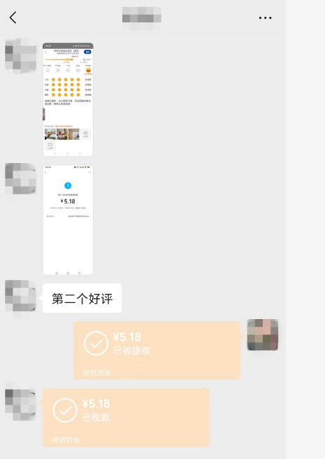 河南洛阳一酒店前台经理提供的“好评返现”转账记录。受访者供图