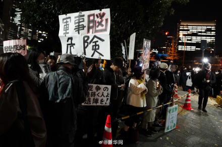 这是继21日和25日的抗议活动后,在首相官邸前举行的又一次大规模抗议集会,有数百人参加。抗议者手持写有“高市辞职”“不能忘记历史,不能重蹈覆辙”等字样的牌子,要求高市撤回涉台错误言论。