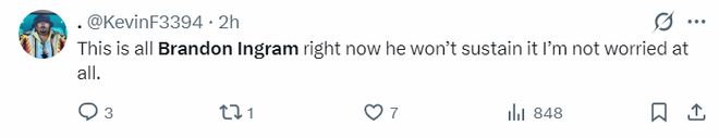 美球迷一早就嘲讽英格拉姆:这就是现在的布兰登-英格拉姆,他不会一直保持这样的状态,我一点也不担心。(没想到他还真的说中了)