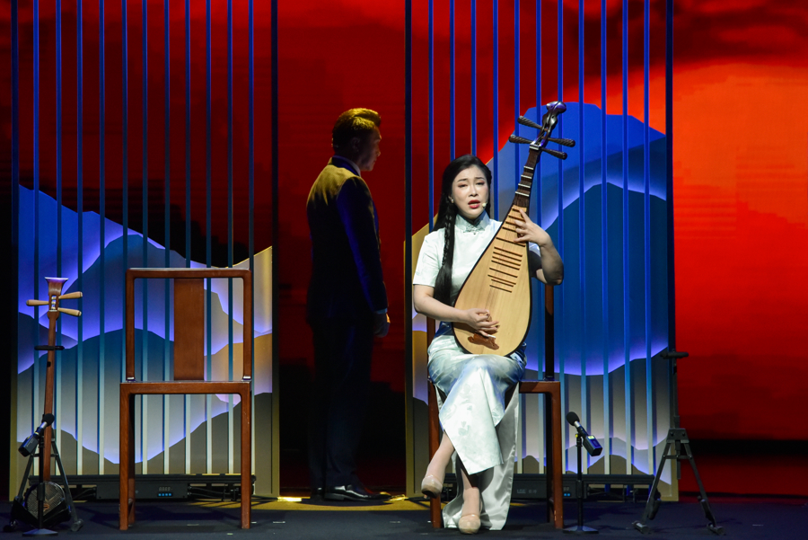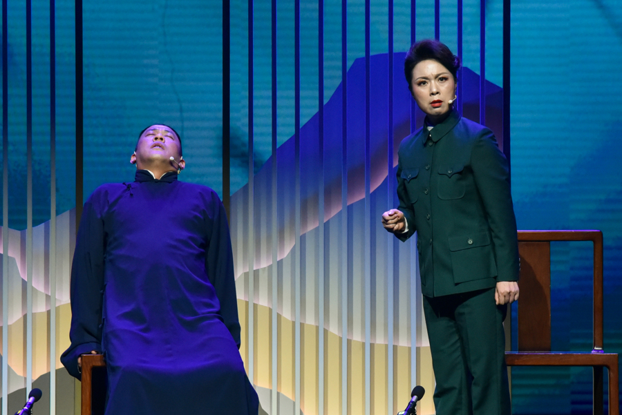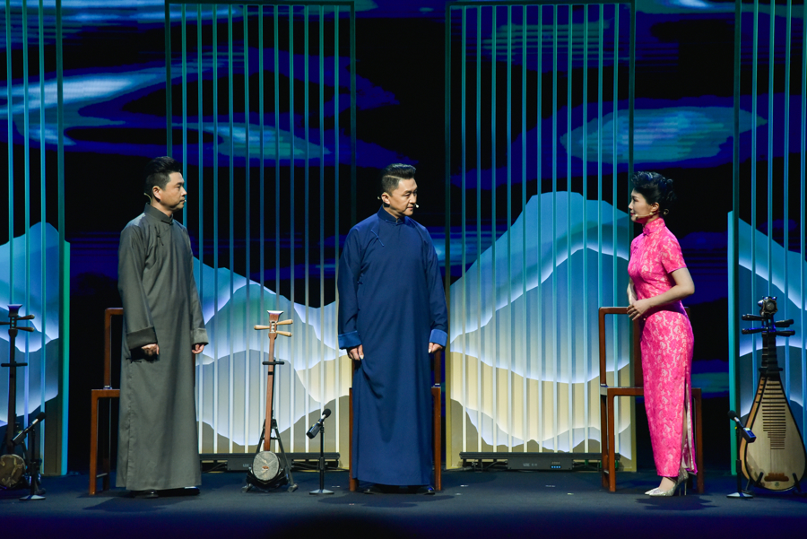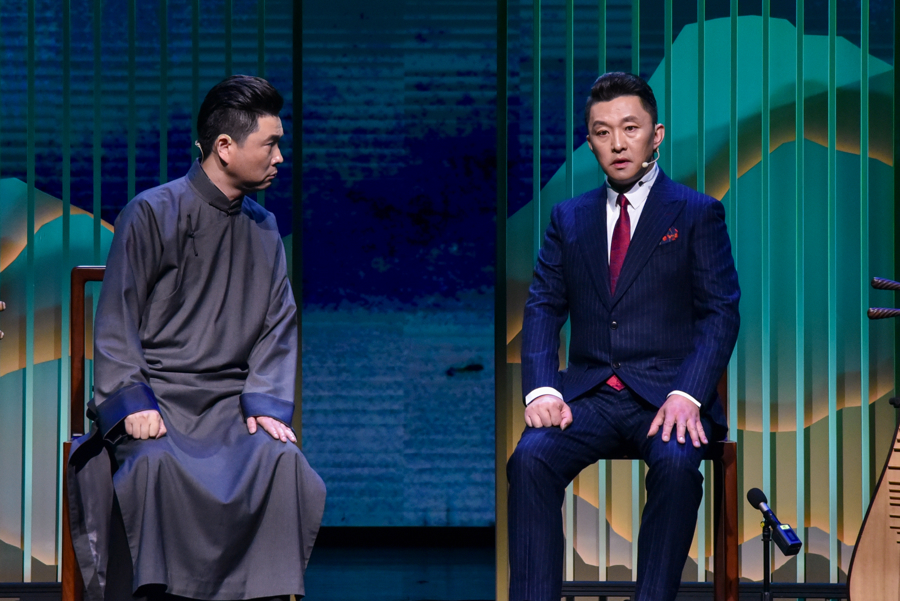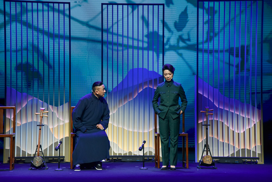 导演王昕轶带领团队在封闭排练中反复打磨细节。一句“老易需要我”的台词,主创足足琢磨了两三天,只为让5个字的表达承载更深层的情感张力。创作过程中,团队始终坚守评弹本体特征,将“说噱弹唱演”的十八般武艺悉数展现,同时大胆融入现代舞台理念。舞台上,四块绘有《千里江山图》局部的木制屏风与多媒体影像交织。“敌我双时空”“回忆时空”等手法的运用,既保留了江南曲艺的雅致,又营造出谍战剧的紧张氛围。