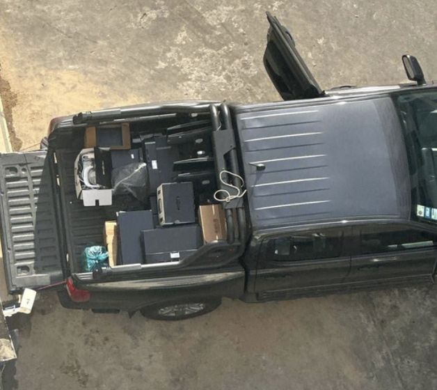 图像显示,诈骗团伙的电脑等设备被搬上了货车