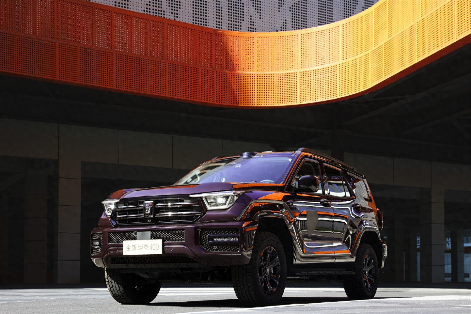 细节方面则略有调整,像是前脸格栅变成了双横条镀铬饰条;车尾备胎罩的造型经过微调,采用和坦克300相同的外露备胎罩,整体造型看起来更干练。此外,车身颜色也在原有的幻夜黑、飞翼银、星云灰基础上,增加了敦煌紫这一配色。