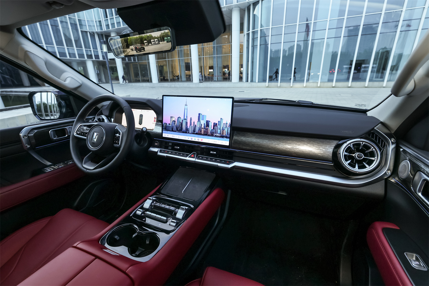 进入车内,能感觉到相比外观更加明显的改变。最大的变化就是取消了之前中控区域的大档把,改为了当下更为流行的怀挡,释放了中控台区域的空间。直观的好处就是放置了两块最大功率50W的手机无线充电面板,而之前的坦克掉头、低速四驱等核心功能的实体按键仍然得到了保留,仍然放置于中控台区域并用镀铬饰条进行了点缀,易用性和质感都表现不俗。