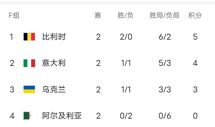 F组:比利时连胜提前出线,阿尔及利亚出局。