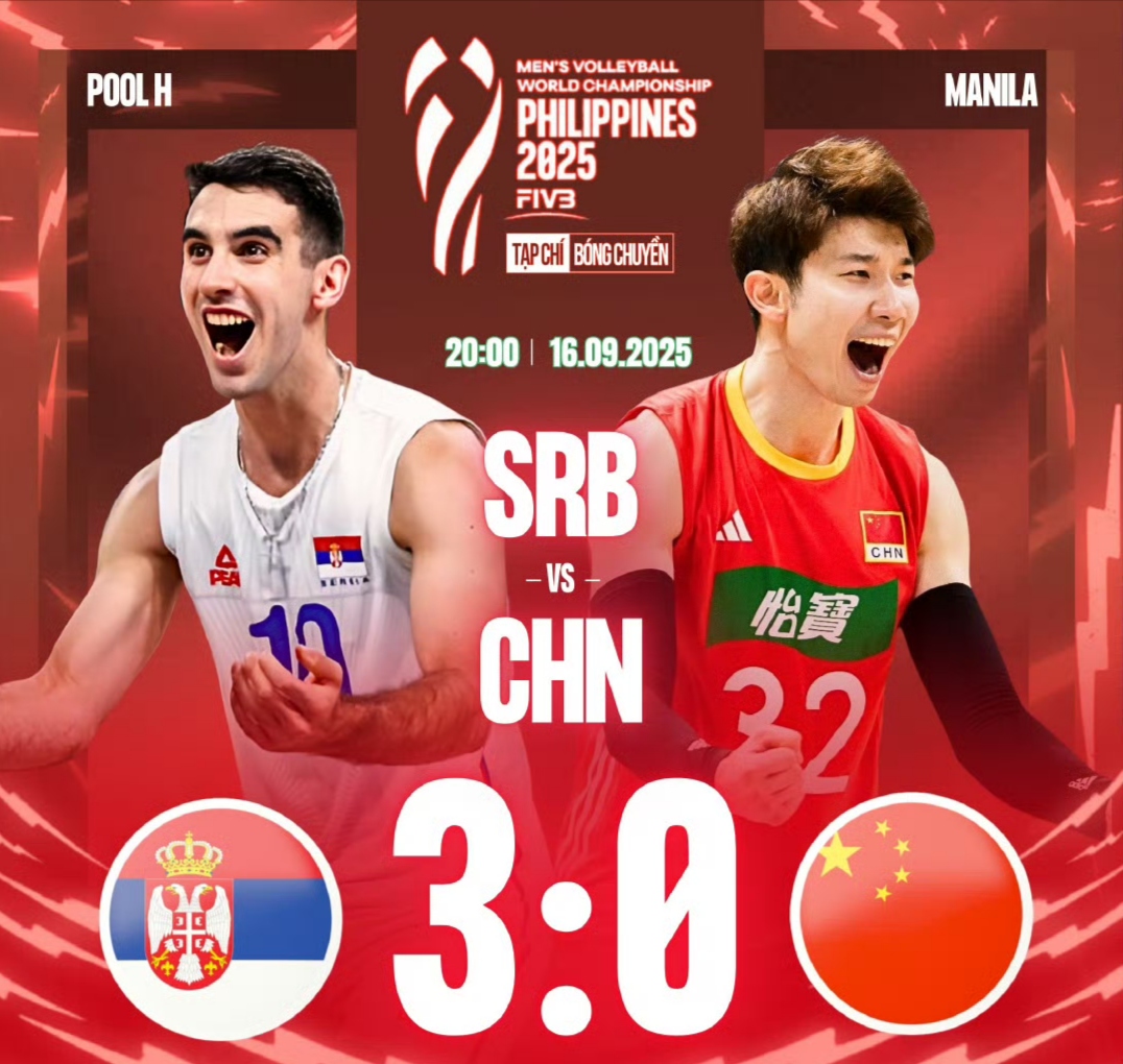 塞尔维亚队 3-0(25-18/25-19/29-27)王滨 16分 27扣15中0失误被拦,1发。赛后采访彭世坤表示“中国队即使我们输了,我们也做得很好”。