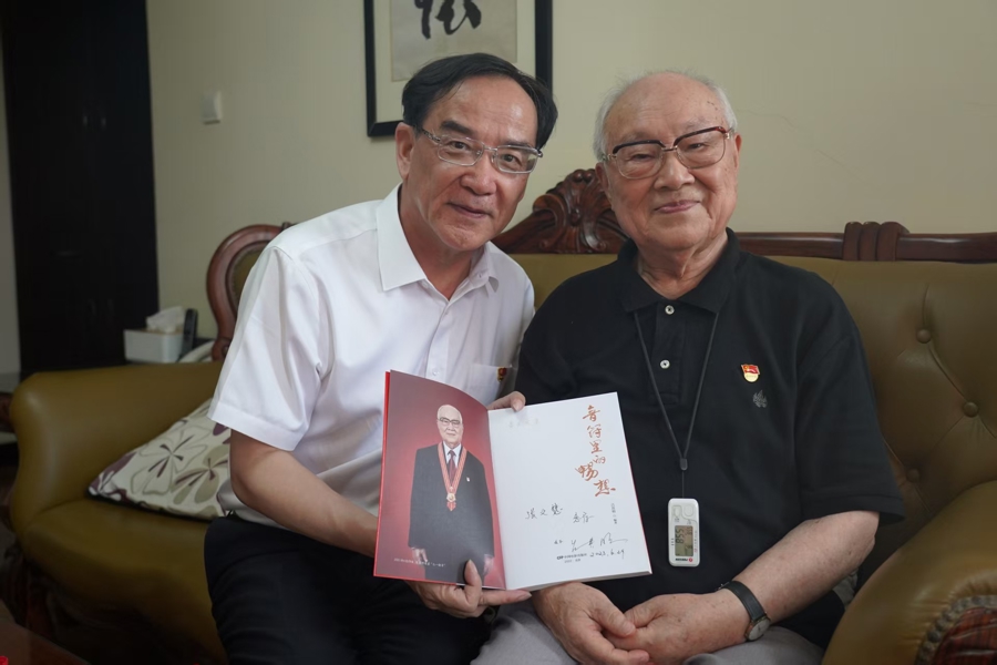 吕其明老师始终保持着谦逊微笑。2021年他荣获“七一勋章”,归来后我见他将勋章与父亲吕惠生的烈士证书并置,父亲是他信仰与创作的领路人。上海市文联和上海音协是《红旗颂》的“催生婆”,1965年为迎接国庆,35岁的吕其明受委托,七天通宵达旦完成总谱。他坦言:“那次创作情感一直在奔腾,旋律是喷薄而出的。”这份创作力源于他10岁加入新四军文工团的经历,家国情怀早已融入血脉。今年春天,第40届上海之春国际音乐节上,《红旗颂》再度奏响,依旧震撼人心。我为《人民日报》撰文,总编辑亲改标题并批注“好选题、好人物”。
