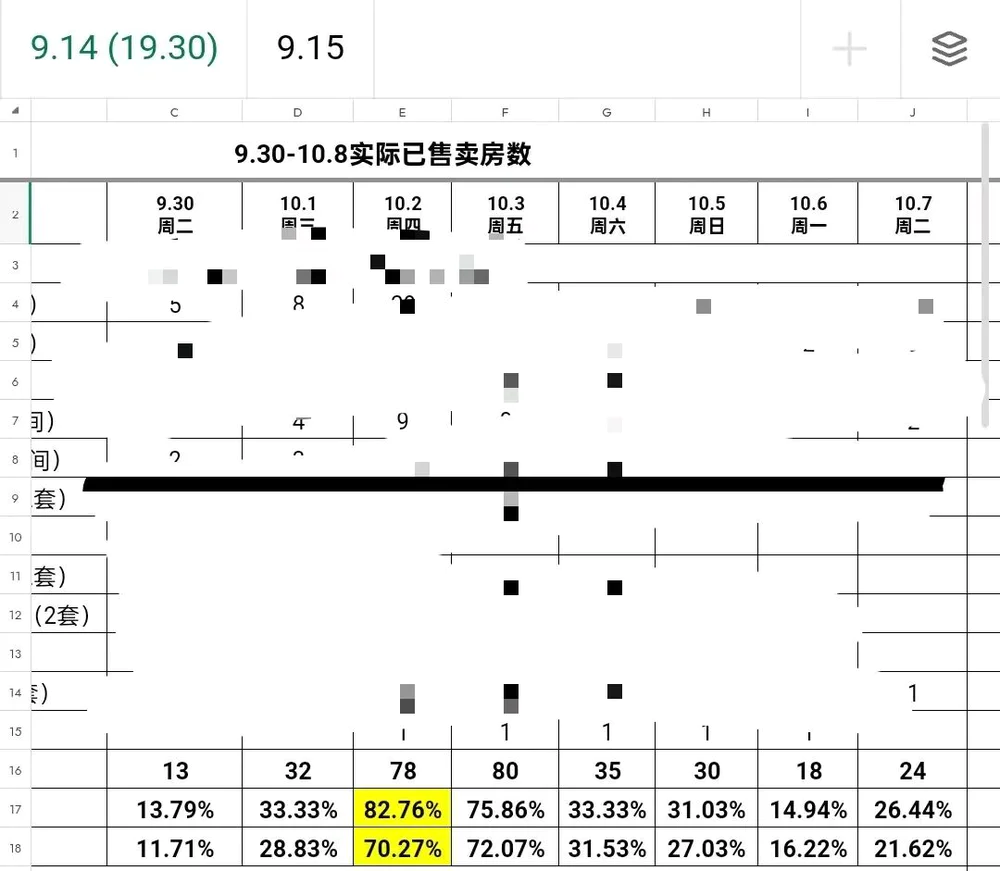 我扫了一眼,发现10月2日、3日的入住率还能维持在75%以上,但到了10月4日、5日,就迅速滑落到三成以下。