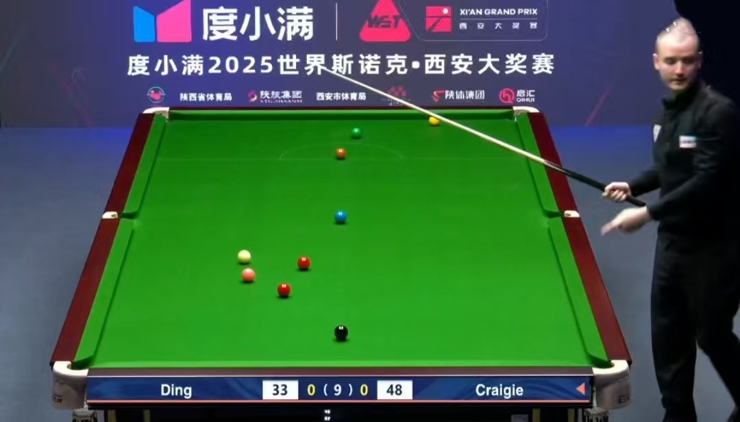 山姆-克雷吉防守出现失误,丁俊晖率先上手,单杆得到33分,山姆-克雷吉长台进攻不中,丁俊晖也没有好的进攻机会,双方开始进入防守模式。