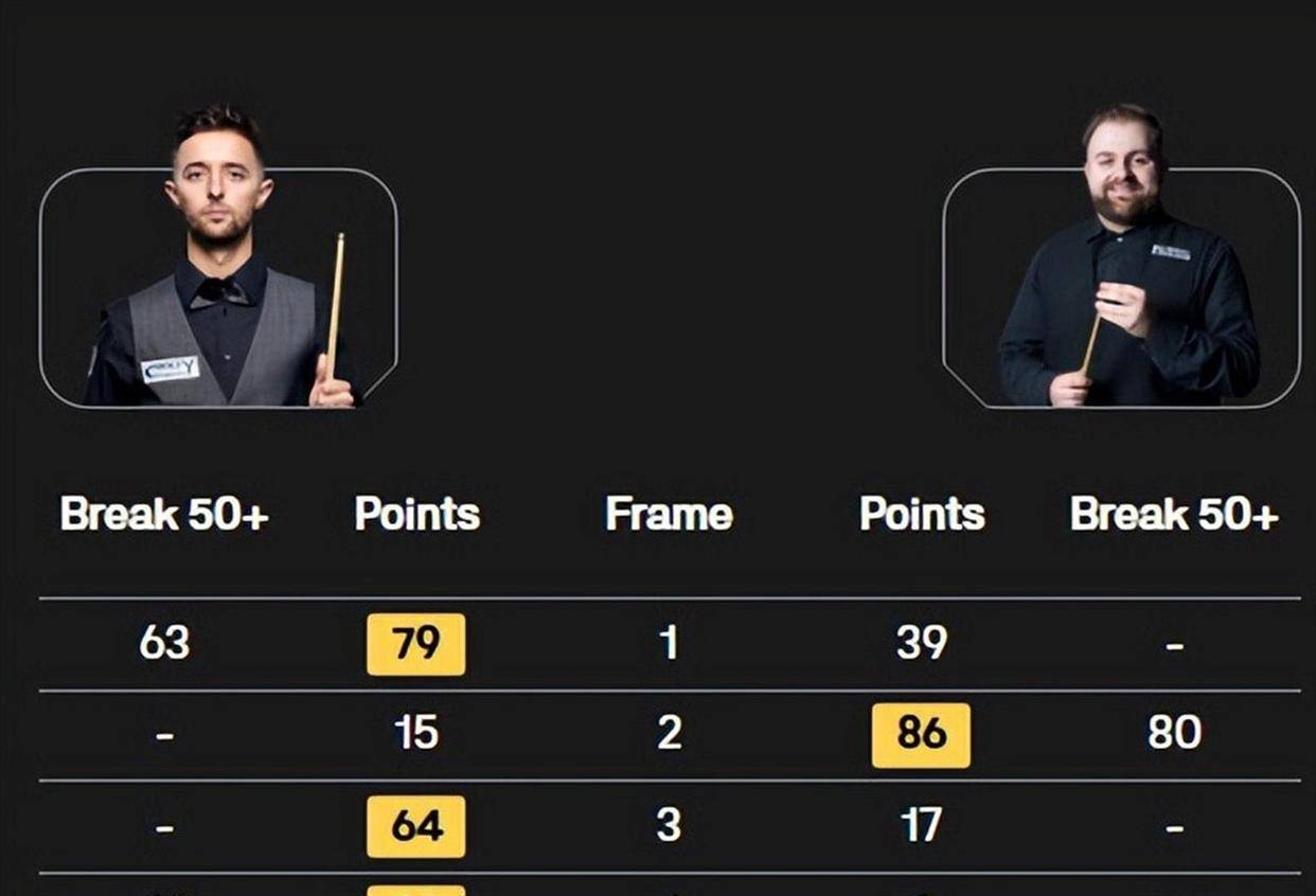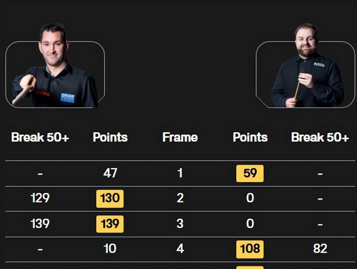 庞俊旭在已结束的三场比赛中,并非没有亮点。例如,在对阵福德的比赛中,他打出了一杆破百,展现了不俗的进攻能力。然而,在与佩奇和韦克林的较量中,他都遗憾地在决胜局中告负,尤其是被韦克林那杆147逆转的那场比赛,对他的士气和积分都造成了双重打击。在他剩余的对手中,既有状态稳定的奥康纳、斯莱塞,也有尚未交手的吉米·罗伯逊等强劲对手,接下来的每一场比赛都将是硬仗。