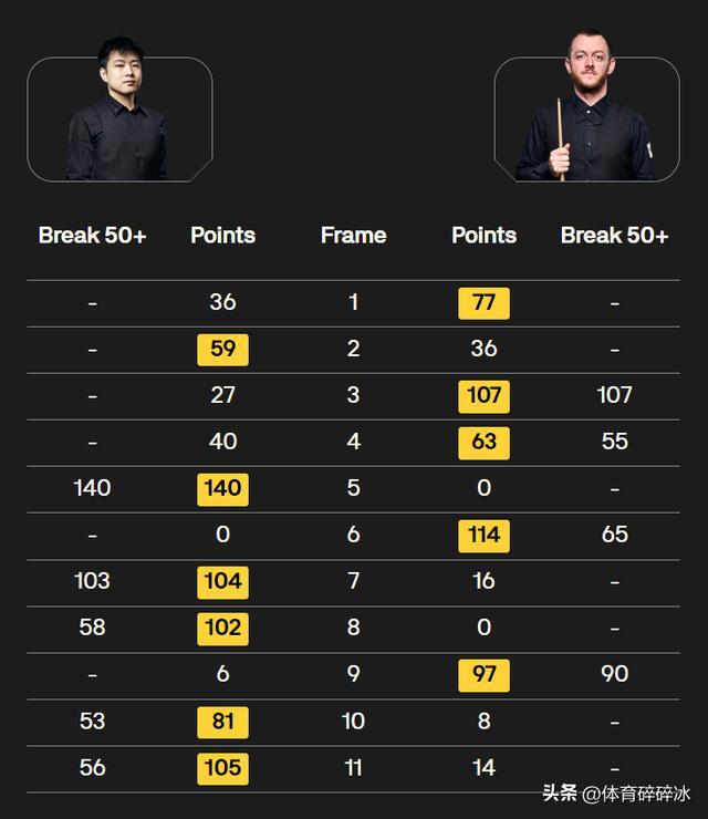 第九局,艾伦打出来了单杆90分,这样他5-4夺得了赛点。第十局,赵心童不甘示弱,反击了一个单杆53分,这样两个人来到了5-5决胜局。