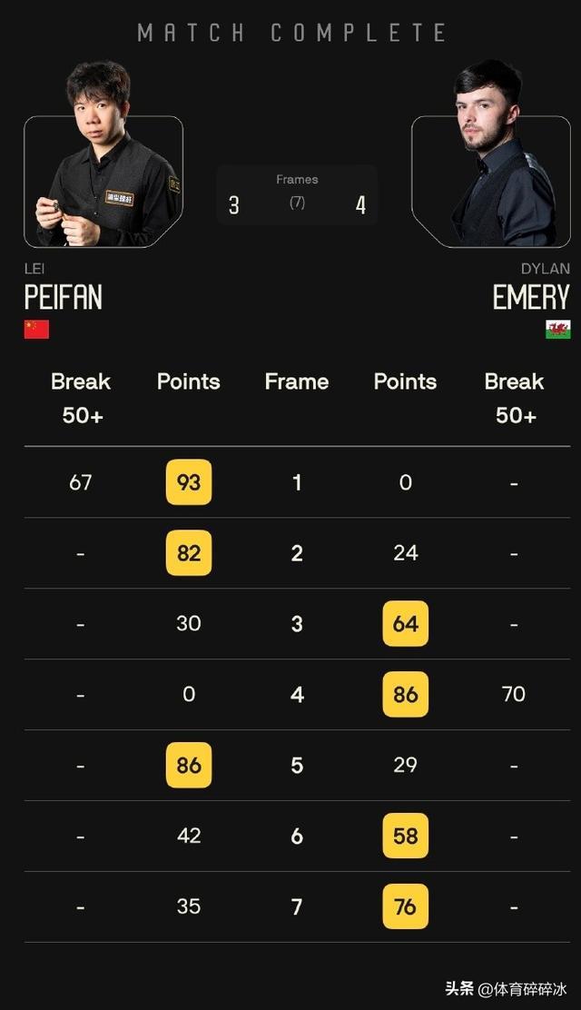 随后,在埃莫里2-2追平比分之后,雷佩凡又3-2夺得了赛点。眼看要晋级成功,结果被埃莫里连赢两局反杀了。
