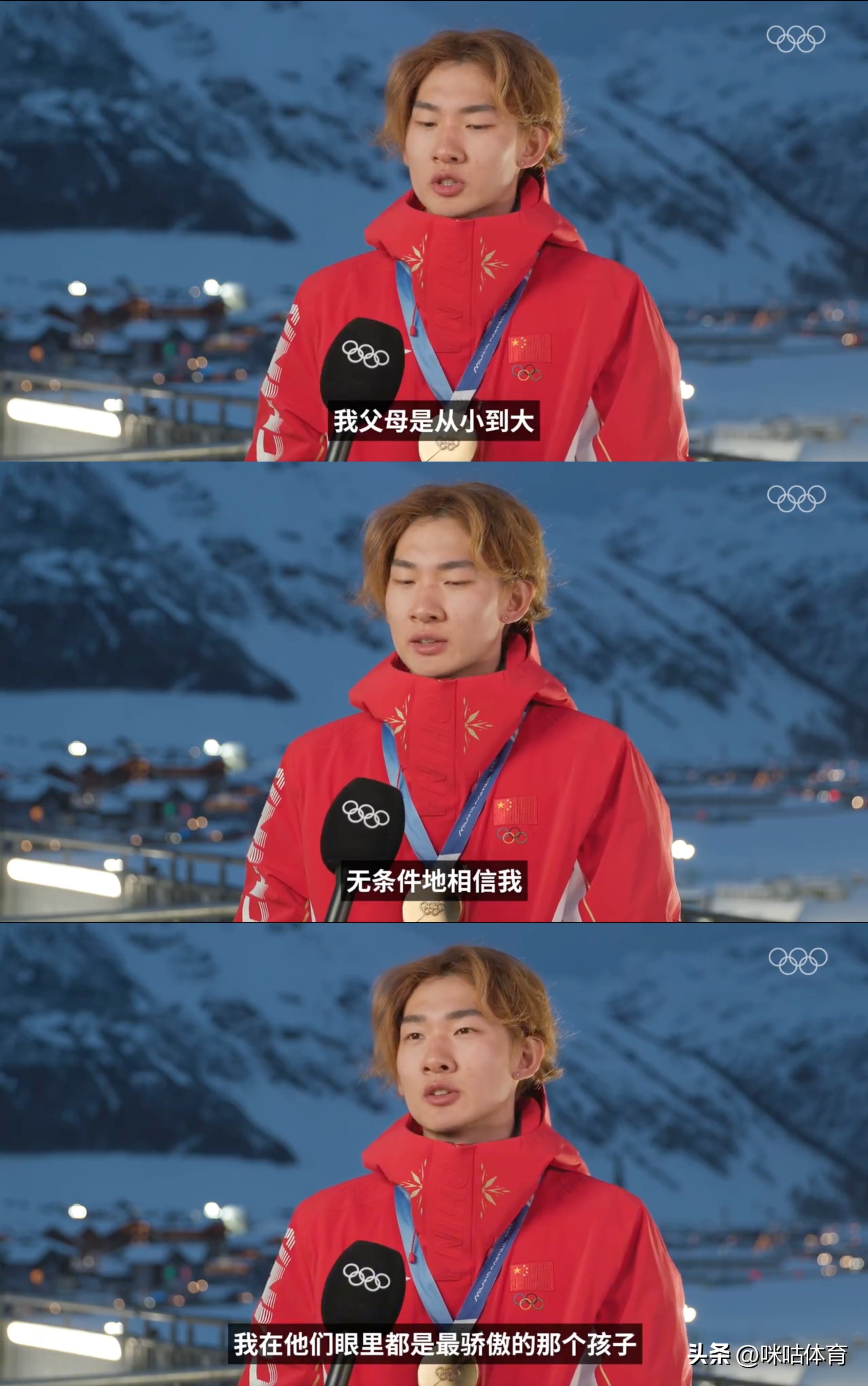 从大跳台的铜牌到坡障的金牌,他集齐金银铜,用实力回应了四年的等待与伤病。走下赛区时他没有怒吼,只是对着看台比心;颁奖时却泪流满面,边唱国歌边任由泪水滑落。那一刻,22岁的他不再是卫冕者,而是一个在爱中长大、终于兑现梦想的少年。