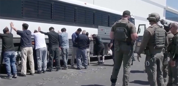 美国执法人员突袭韩国工厂的现场图 视频截图