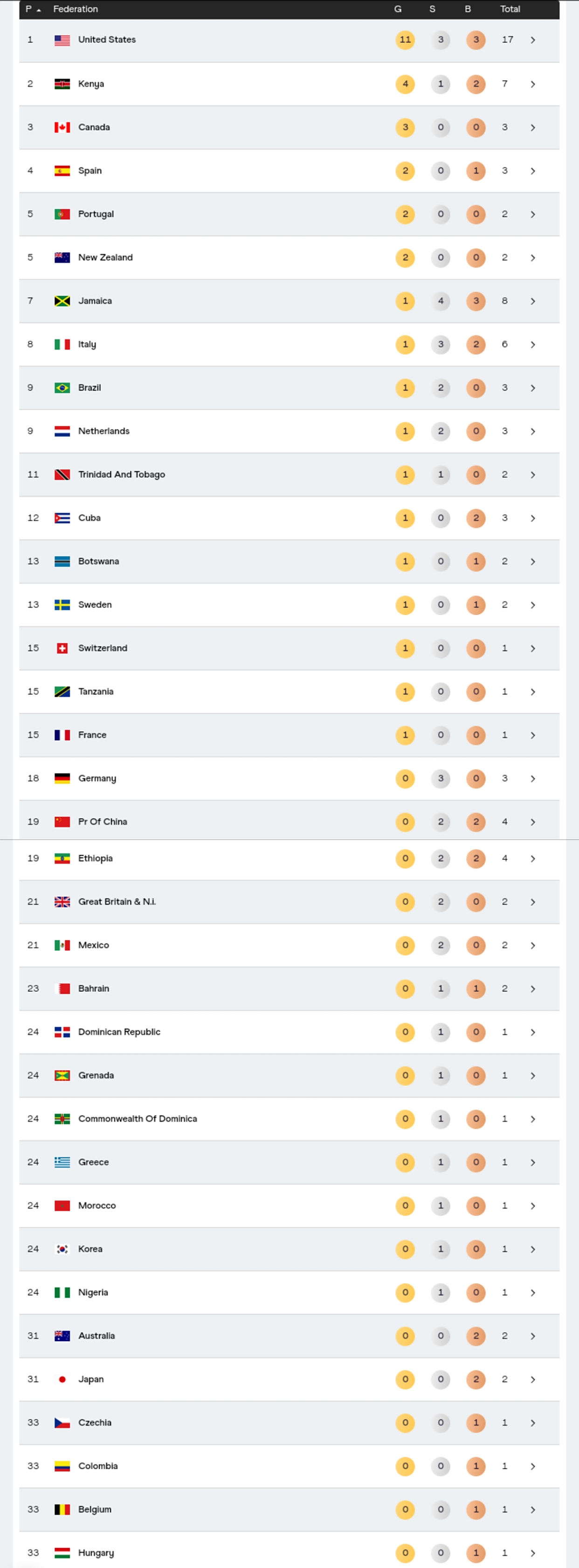女子20公里竞走,西班牙选手,卫冕冠军佩雷斯以1小时25分54秒的赛季最好成绩实现卫冕,连续两届包揽20公里和35公里竞走金牌。冈萨雷斯1小时26分06秒创造大洲纪录获得银牌,日本选手藤井菜菜子1小时26分18秒创造国家纪录获得铜牌,这是日本队在本届世锦赛第二枚奖牌都是铜牌都来自竞走。世界纪录保持者,巴黎奥运冠军杨家玉1小时27分16秒获得第六名:5公里时杨家玉第2,吴全明第5,彭丽第8。11公里时杨家玉排名第4,吴全明第6,彭丽第8!14公里时杨家玉掉到第6了,吴全明第4,马丽第9!17公里时杨家玉还是第六,吴全明第7,马丽第9!