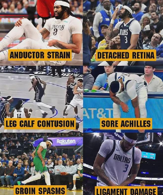 据统计,浓眉加盟小牛之后,已经在腹部、眼部和大腿等9个不同的位置受伤,伤痕累累。