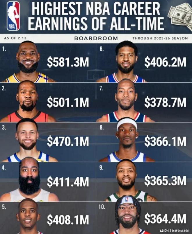 谁曾想到2005年选秀大会上的第四顺位矮个子后卫,他能在联盟征战21个赛季且获得如此多荣誉。 此外,保罗还在NBA赚到了NBA历史第五多的4.081亿美元球员薪资,仅次于勒布朗詹姆斯(5.813亿)、凯文杜兰特(5.011亿)、史蒂芬库里(4.701亿)、詹姆斯哈登(4.114亿)。