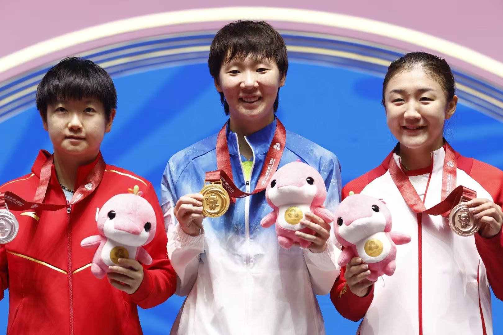 樊振东和王曼昱均实现了全运会男、女单的卫冕,这其中王曼昱也成为国乒女队历史中,唯一一位没有获得过奥运单打冠军,但获得了全运会女单冠军的球员。